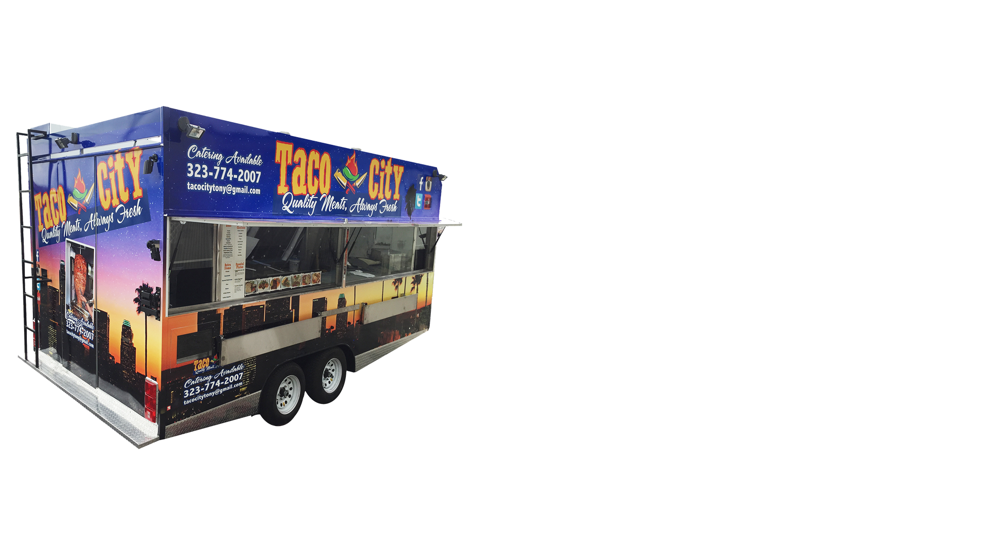 Tacos el rojinegroTacos food trailer. 14′ Step-in trailer made to Los Angeles County 2022 requirements. Many customers prefer a trailer over a food truck due to pricing. A trailer is more affordable and sometimes more convenient for the customer. The kitchen is similar to a food truck, the only difference is that there it is not driveable. It comes complete and ready to work, with see-thru windows, top ventilation, stainless steel finishing, sinks, aluminum floor, shelving, storage, etc.